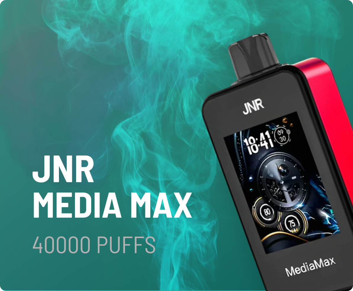 JNR Media and Media Max are configured for the highest puff counts in the lineup, up to approximately 40,000 puffs.