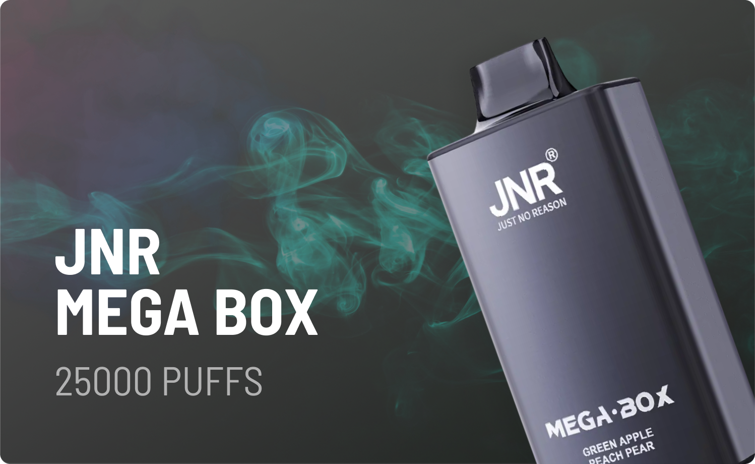 JNR Megabox 25,000 offers a larger body format with long-lasting capacity. Designed for shelves that feature high puff disposables for frequent users.